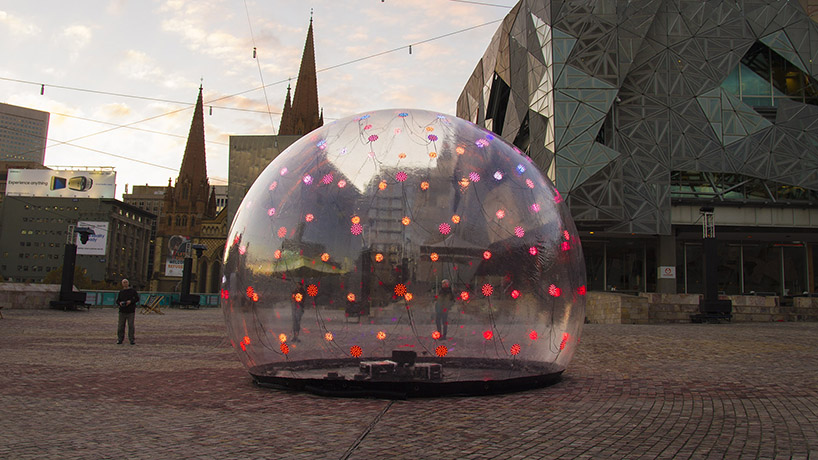 Eness Sonic Light Bubble Installation In Melbourne Responds To Human Interaction
